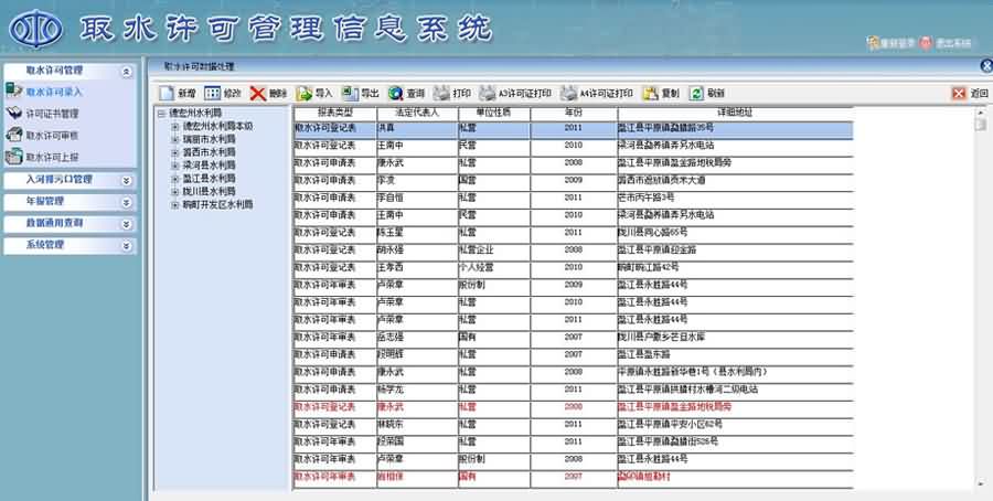 (2)實現取水許可相關數據匯總統計,實現按流域分區和行政區(省、地市、縣)查詢年審總結相關數據。
