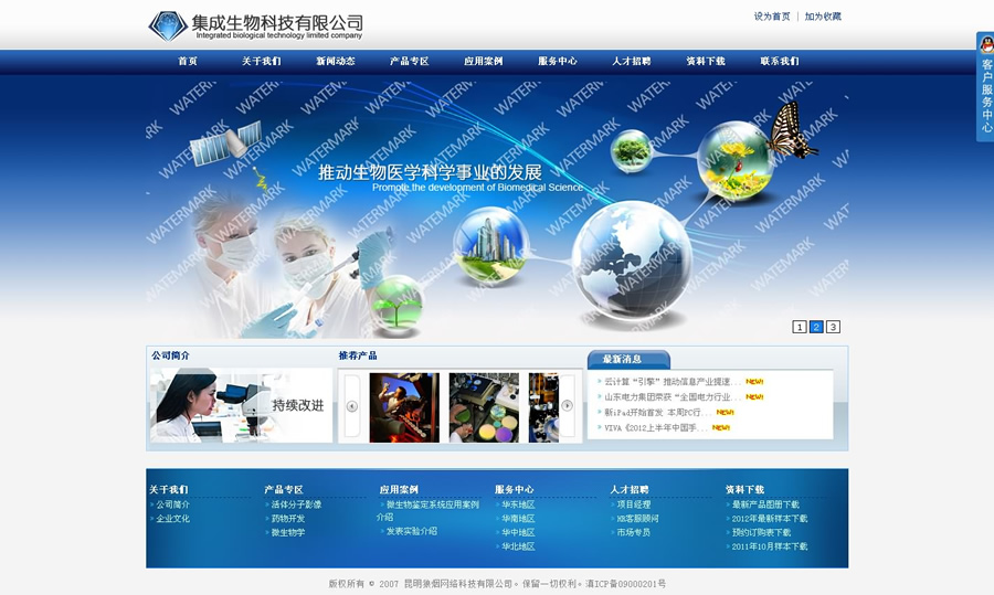 集成生物科技有限公司集成生物科技有限公司采用最新的.Net技術結合Sql Server 2008進行開發的,系統滿足了目前主流的宣傳營銷型企業網站的需要,通過網站管理系統,對前臺頁面的信息實現動態發布.
