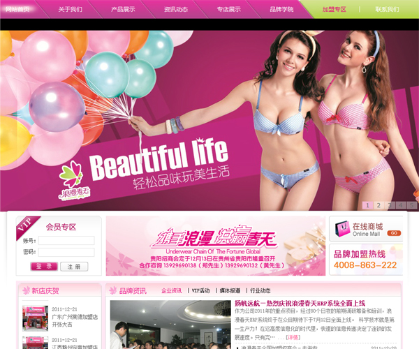 我們對浪漫春天內衣秀采用最新的.Net技術結合Sql Server 2008進行開發的,系統滿足了目前主流的宣傳營銷型企業網站的需要,通過網站管理系統,對前臺頁面的信息實現動態發布,網站包括會員注冊登錄,義務管理等....