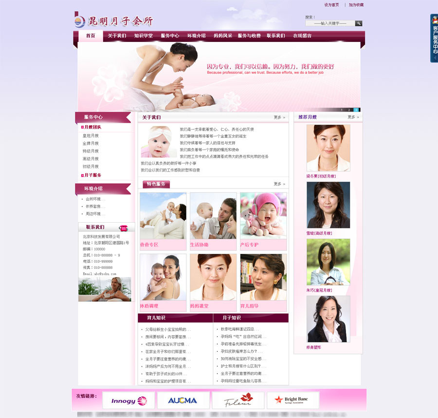 天光浩月公司的昆明網站建設客戶案例:昆明月子會所網站。昆明月子會所網站進過二個星期的定制開發,正式上線運行。我們在此表示祝賀,同時感謝昆明月子會所選擇了我們來進行網站開發,并對貴公司在網站建設開發過程中給我們提供資料與幫助的員工表示深深的謝意。昆明月子會所網站在開發建設過程中,從網站設計到功能都進行了最好的優化,為網站的推廣提供了很好的基礎。以下圖片為昆明月子會所網站版面。