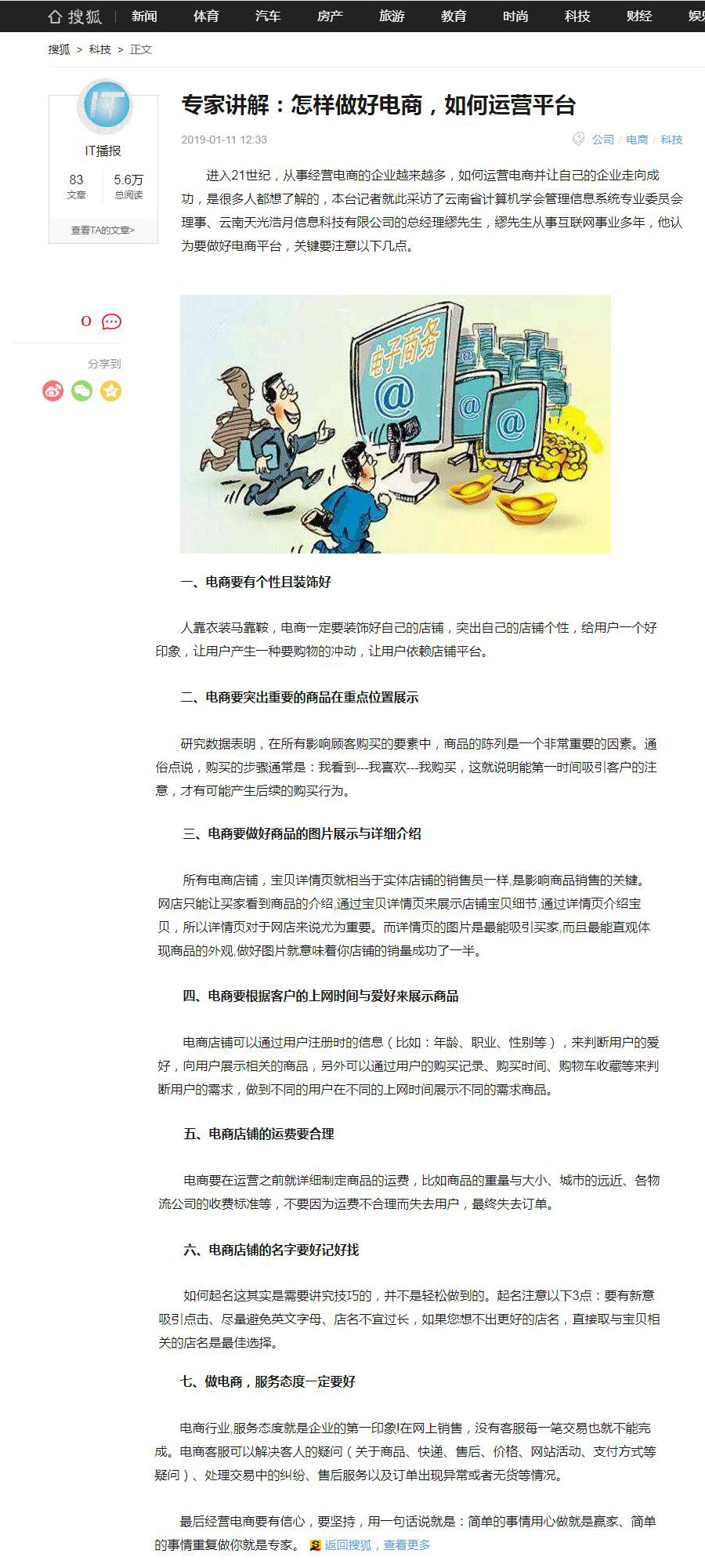 2019年1月,中國搜狐公司記者采訪了我公司的網絡營銷專家繆經理,請他談談網絡營銷方面的知識,并將采訪的內容發布在搜狐官方網站上,在此祝賀繆經理!,如圖: