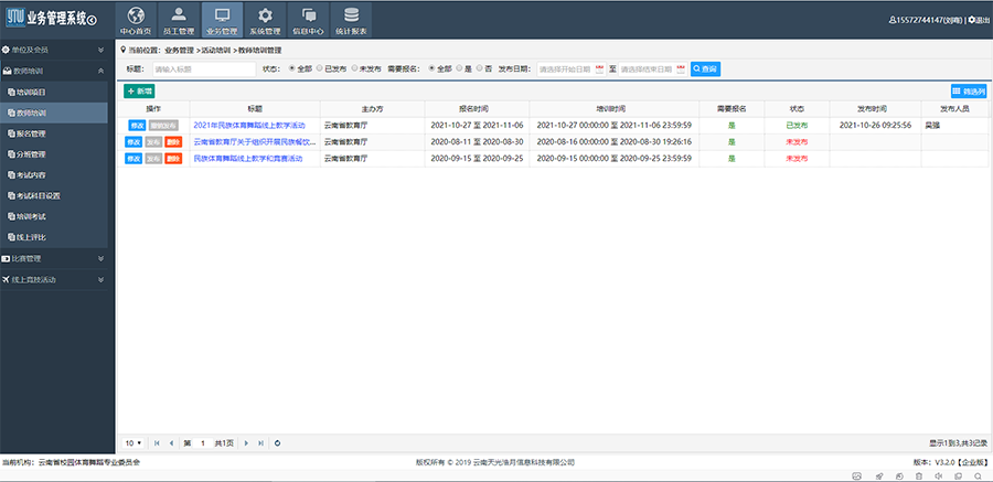 公司受云南省教育廳以及昆明學院的委托開發(fā)了云南校園體育舞蹈比賽管理系統,系統由PC端管理、微信公眾號以及微信小程序組成,系統的主要用途是進行云南省內的網上體育舞蹈比賽、舞蹈教師培訓以及全國各高校大學生體育舞蹈網上比賽。系統的主要功能包括:系統設置、比賽報名、比賽管理、線上競賽活動、教師培訓、論文征集、教學成果、成績公示、比賽視頻、證書管理、資料下載、網絡投票等。系統基于B/S架構,采用Vs2019結合Ms Sql Server 2008大型數據庫進行開發(fā)。